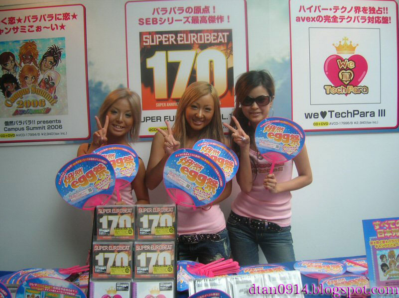 | Yoshimi, Tomomi and Hanako formerly from 9LoveJ promoting Super Eurobeat 170, which was the newest volume at the time. You might recognize Hanako, she's Bubbly's main model. |
